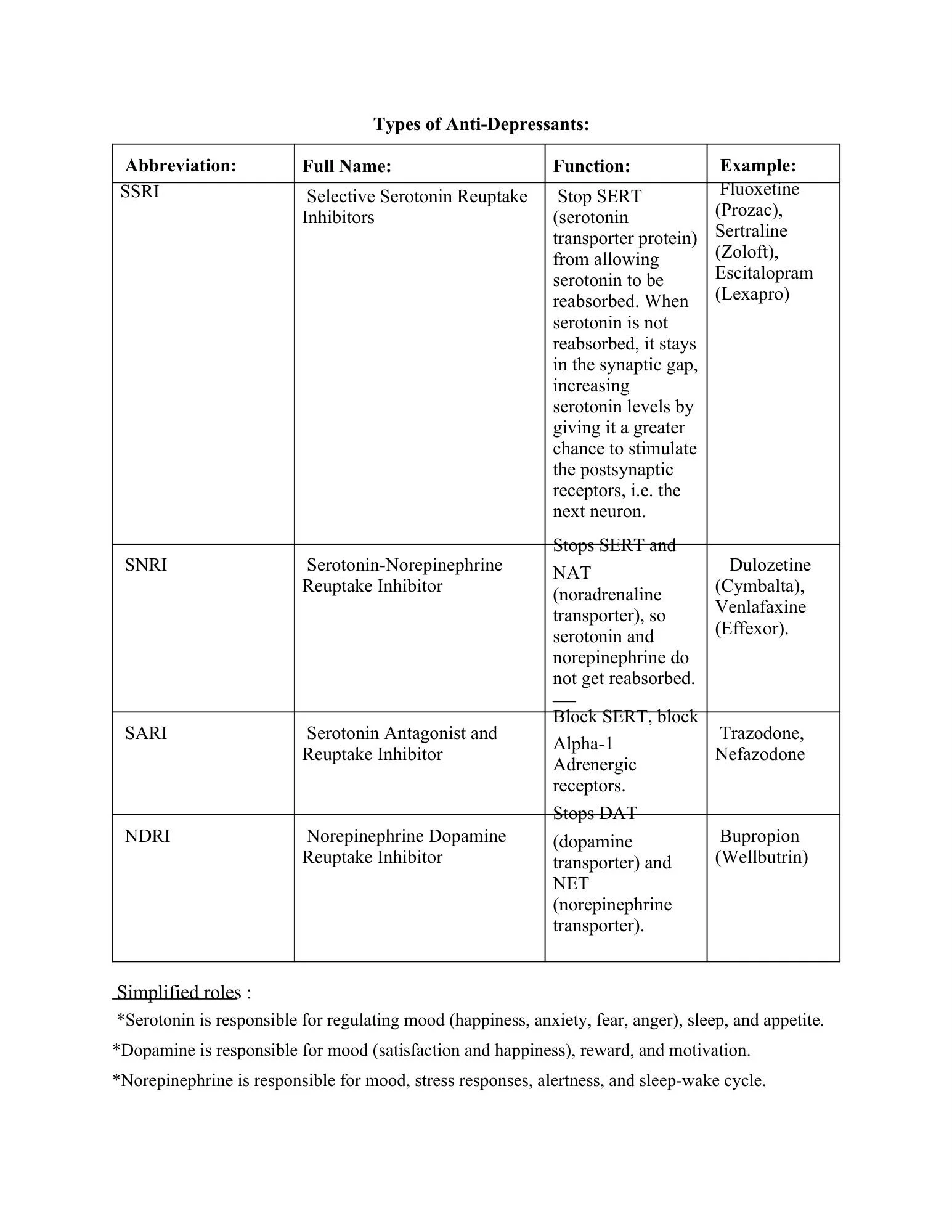 While this blog has not been all too encouraging, I hope I have brought some awareness to the medications used to treat autism’s co-occurring disorders. I mostly threw out names, but there is not much else I can do, for everyone’s situation and autism is unique. The ball is now in your court; research and talk to your trusted professional to find out what would be best for your child or you. It can be daunting to start taking these medications, and it begins largely with trial and error. While the initial step is hard, nervewracking, or confusing, I want to encourage you. These medications are the difference between health and illness, happiness and sadness, and comfort and distress for many of us with autism. With trusted providers, a support system, and some networking, tackling medications becomes easy. I cannot understate the value of talking to autistics and parents and hearing their stories. You are not alone in this. To offer some help, I have attached a chart below detailing 4 classes of antidepressants.